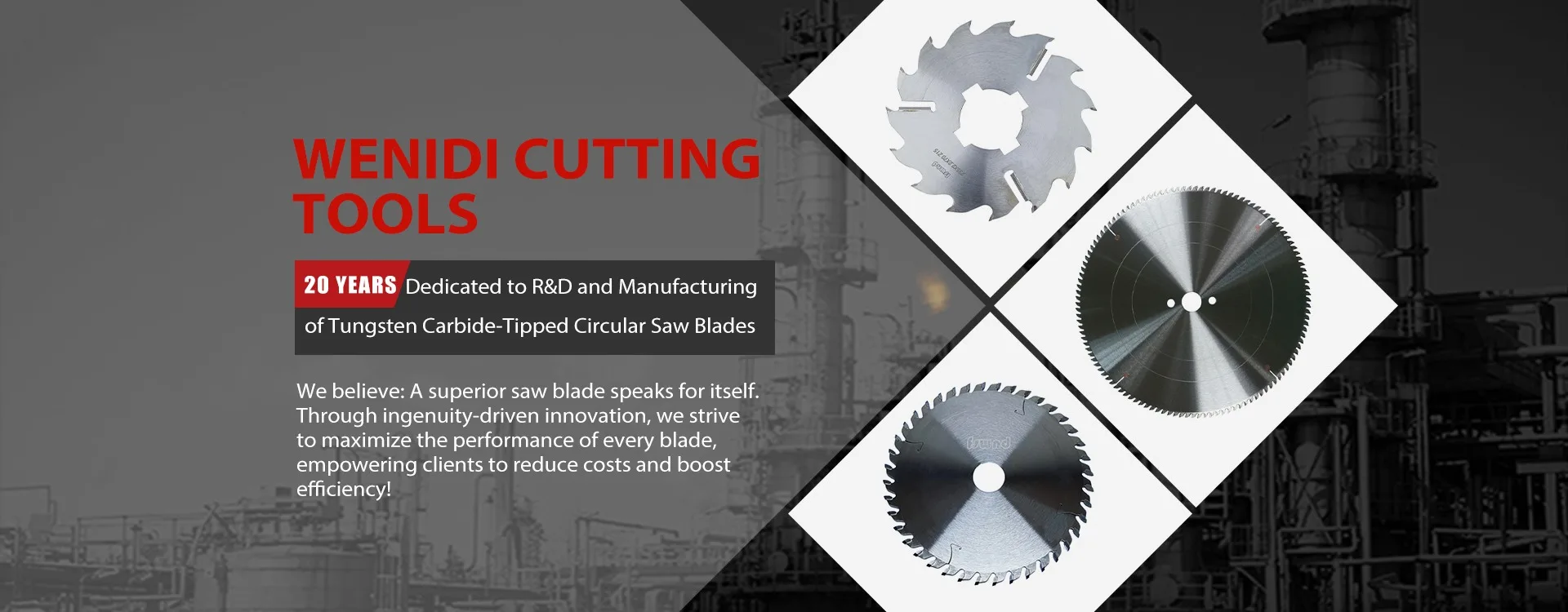 Foshan Weinidi Cutting Tool Co.,Ltd. is a professional manufacturer of TCT saw blades here in China, with more than 10 years experience and skillful workers, the ideal supplier for DIY customers and professional users. Our highly cost-effective "RUI ZHI ZUN" circular saw blade, she inherits our accumulated production experience and European advanced technology, meet the market demands and Won the favorite of the old and new customers "RUI ZHI ZUN" have greatly enhanced the precision of the cutting targets and have improved the work efficiency. she owns the good wear-resistant and can be comparable to similar imported products. we sincerely welcome merchants from at home and abroad to cooperate with us!